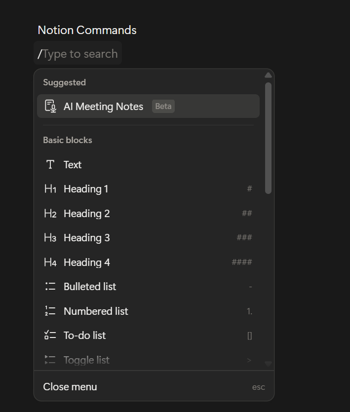 But the interface is. Features live behind slash commands, hover states, contextual menus. The toolbar doesn't compete for your attention. The sidebar collapses. Toggles hide content until you expand them.